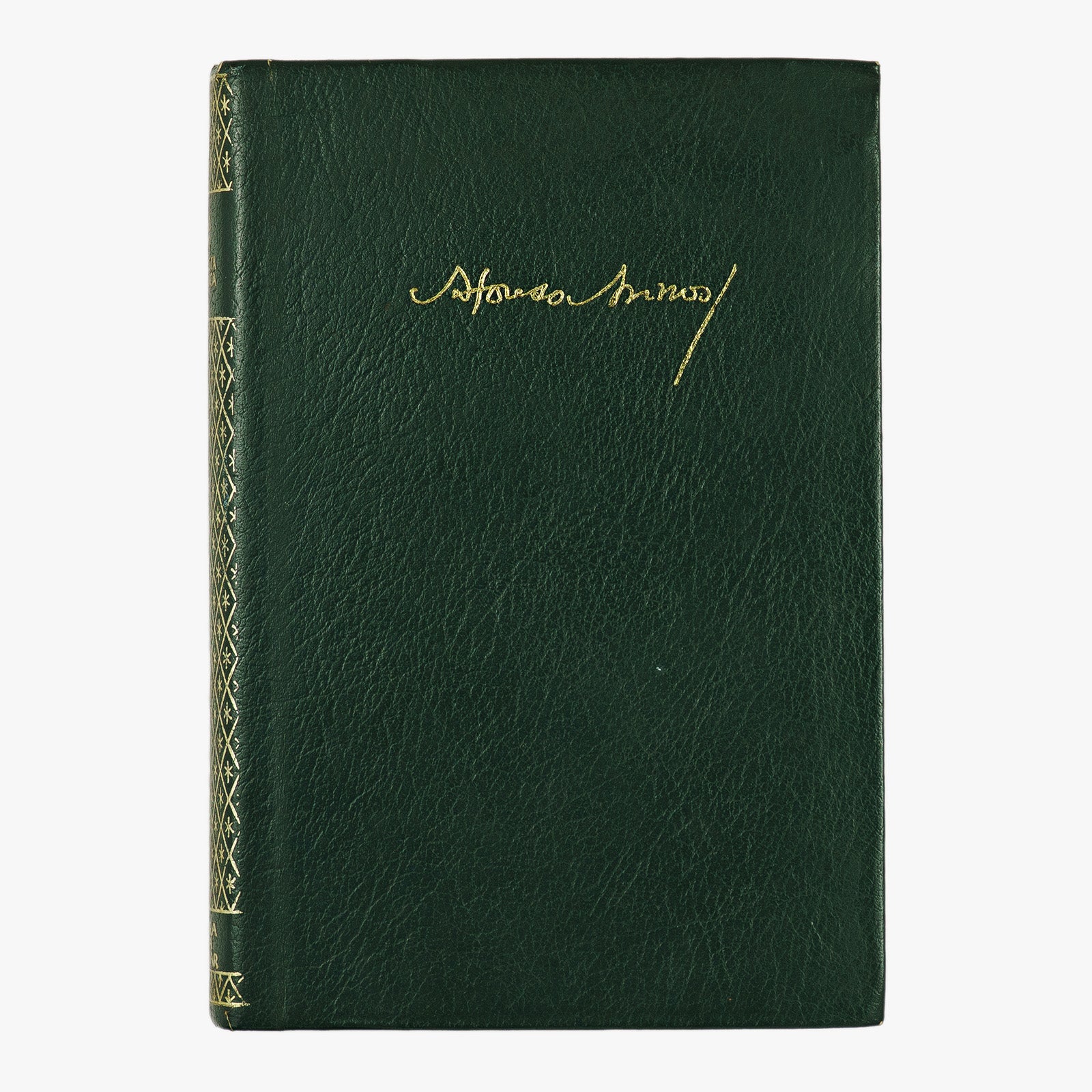 Encadernação editorial em capa dura verde com douração preservada na lombada e na assinatura fac-símile do autor na capa. O exemplar apresenta miolo íntegro, firme, páginas levemente amareladas pelo tempo e pontos discretos de oxidação nos cortes, compatíveis com a idade da edição. Possui uma rubrica apenas na folha de rosto, que não atrapalha leitura.