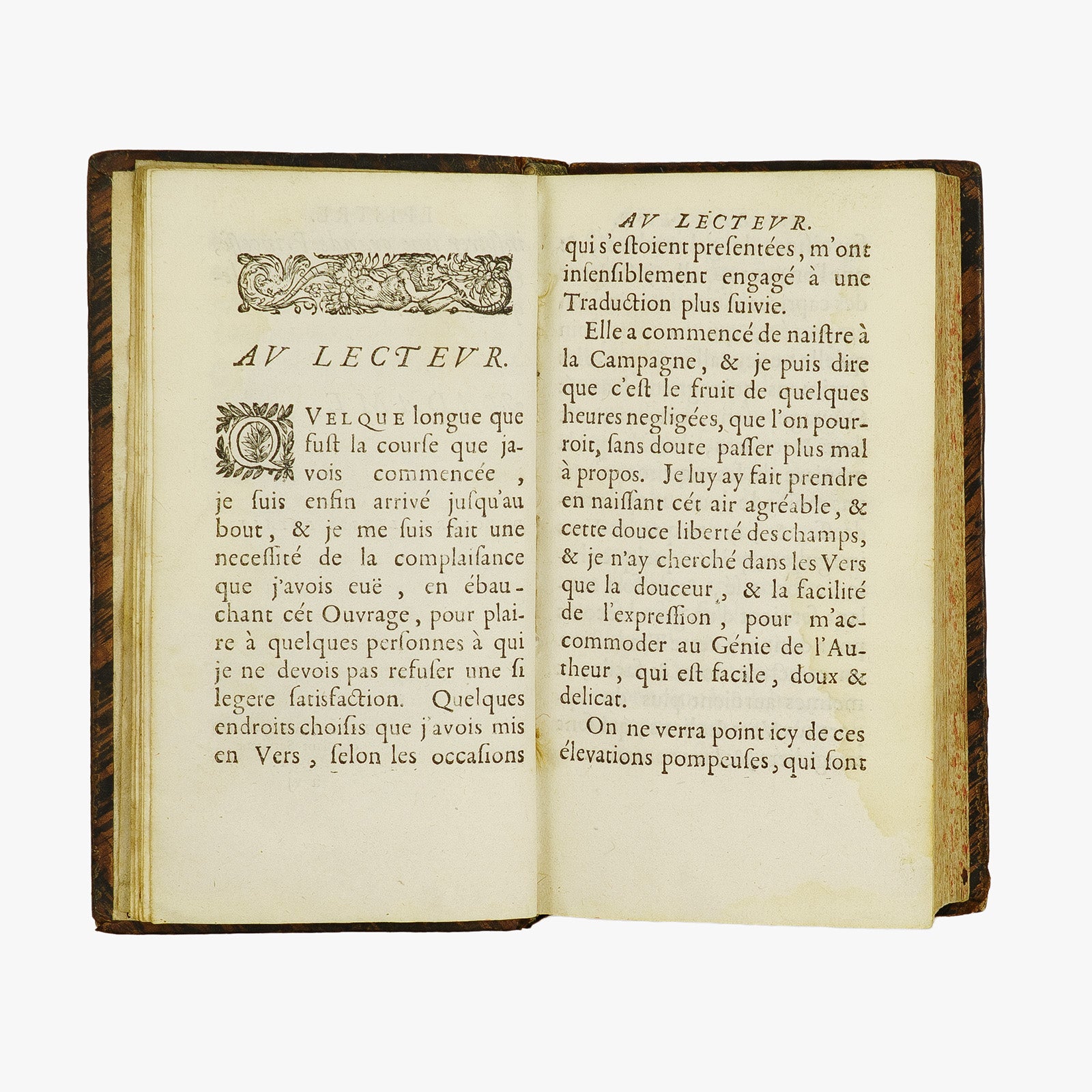 GUARINI (Giovanni Battista) [1538–1612]. — IL // PASTOR // FIDO. // LE // BERGER // FIDELLE. // [frontispício gravado avec scène pastorale, Cupidon, devise: “Beautés, cessez d’estre cruelles // Vous aurez des Bergers fidelles”]. — LE // BERGER // FIDELLE, // TRADUIT DE L’ITALIEN // DE // GUARINI, // EN VERS FRANÇOIS. // [ornement gravé]. — A PARIS, // Chez CLAUDE BARBIN, sur le second Perron de la Sainte Chapelle. // ——— // M.DC.LXXII. [1672]. // Avec Privilege du Roy. — In-12, [frontispício], [préliminaires non chiffrés], 573 p., [2] p. privilège. Reliure pleine peau brune d’époque.
