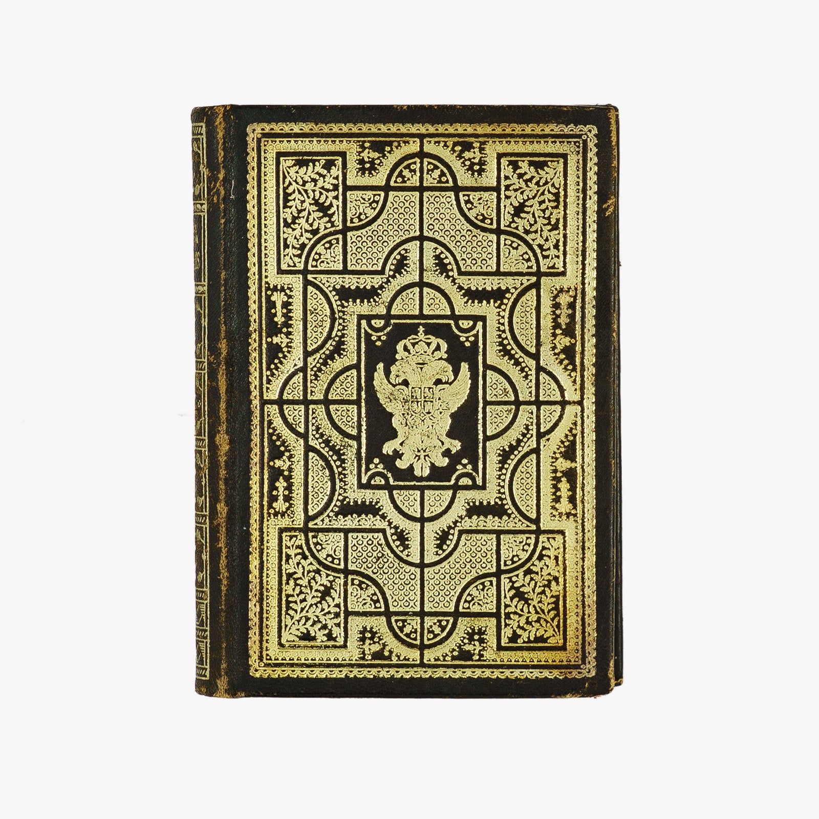 Este exemplar possui corte superior dourado preservado, detalhe que reforça o cuidado estético da edição. Cortes lateral e inferior limpos e preservados. Miolo íntegro, com tipografia nítida e encadernação permanece firme, sem folhas soltas, apenas com alguns desgastes superficiais em algumas partes das extremidades das capas e lombada. Folhas de guarda marmorizadas, íntegras e preservadas. As páginas se mantêm limpas e homogêneas. Sem assinaturas, carimbos ou marcações. 1943.
