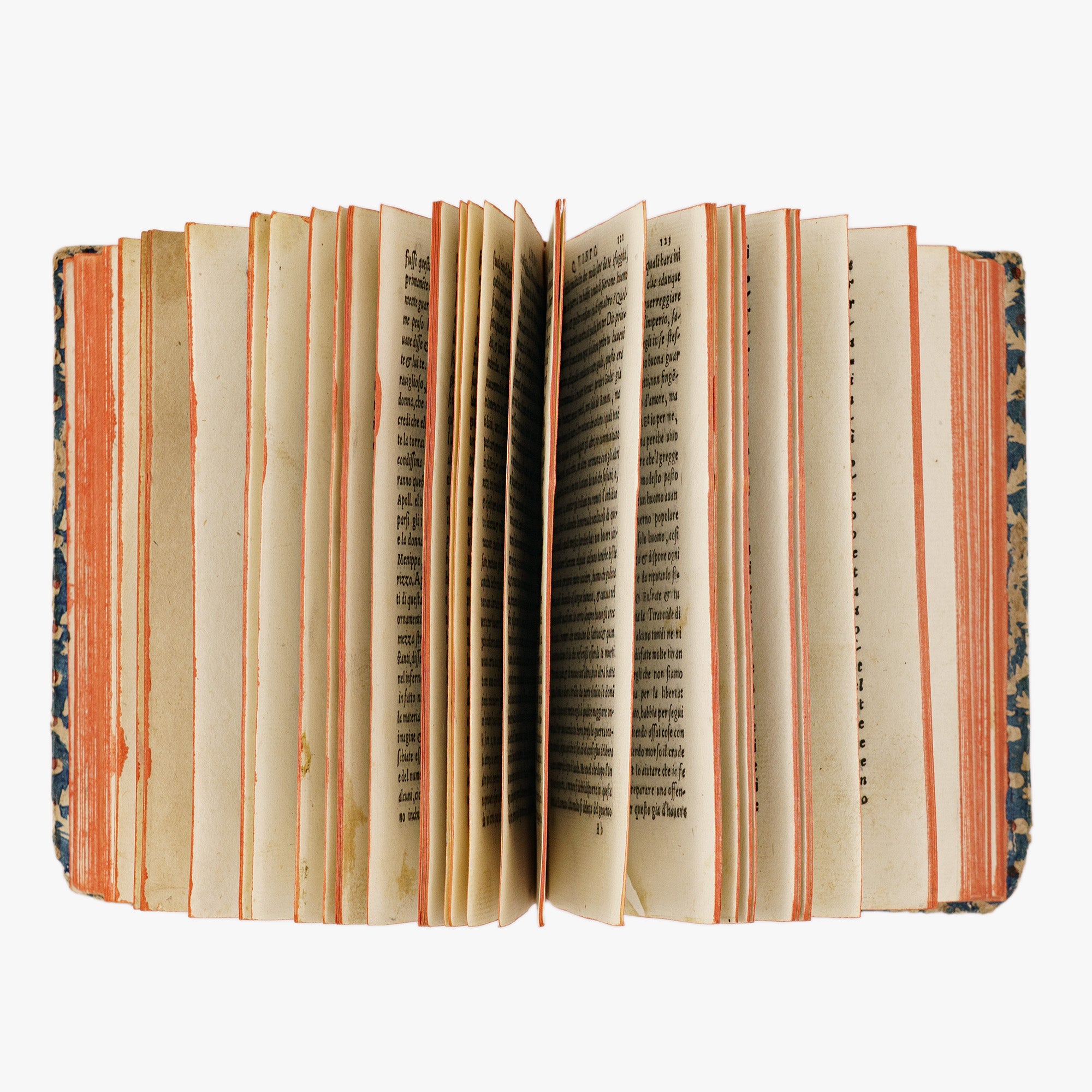Impresso em Veneza, 1549, pelo tipógrafo e livreiro Comin da Trino di Monferruto, ativo em meados do século XVI, este volume é testemunho direto do ambiente editorial veneziano — o maior centro tipográfico europeu da época.