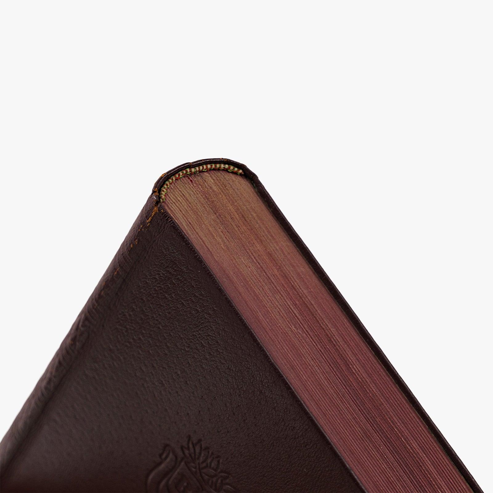 Encadernação editorial em couro em tom de vermelho escuro, com douração preservada na lombada. Capa e lombada firmes, apresentando apenas alguns pontos de desgaste nas suas extremidades e uma pequena fissura, quase imperceptível, na extremidade superior da lombada, pelo uso e pelo tempo. Miolo íntegro, firme, com folhas limpas e bem preservadas, apresentando apenas discretos pontos de oxidação nos cortes. Corte superior tingido em vermelho preservado. Papel especial, fabricado pela Ryburndale Co., em Ripponden, Yorkshire (Inglaterra). 1.ª edição, 1963.